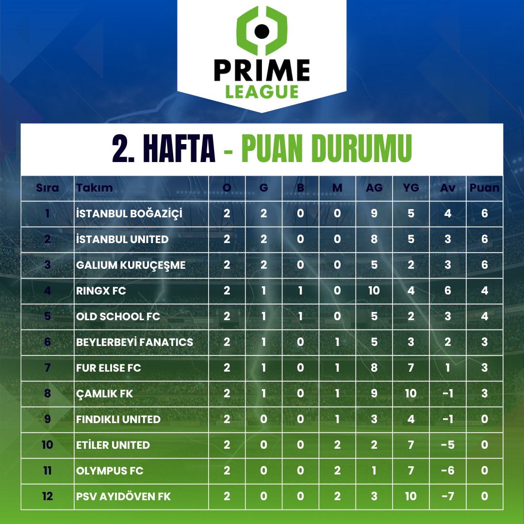 4 | BANLİYÖ34 | 11 | 6 | 3 | 2 | 28 | 20 | 8 | 21 |
